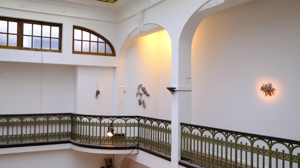 Bienvenue au carnaval des fantômes : silhouettes presque humanoïdes, corps aquatiques ou alienesques, lichen-corail accrochés aux parois des murs… Les êtres qui se cramponnent ça et là tentent de se connecter par pulsations et par frémissements de queues.